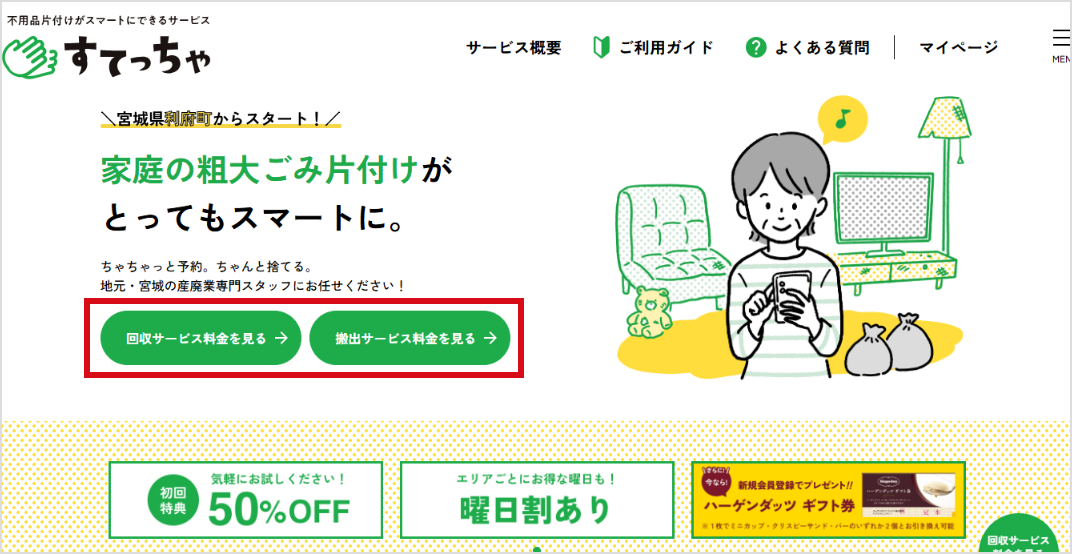 捨てたいものが保管されているエリア(市町村まで)を選択します。