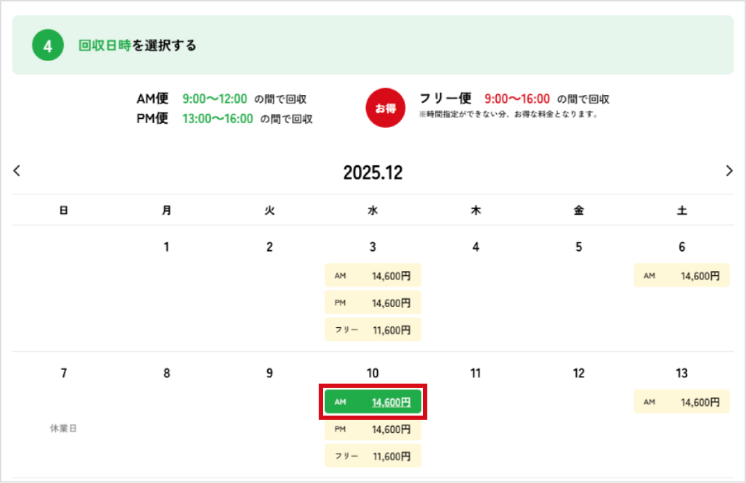 日時ごとに概算参考金額が表示されます。