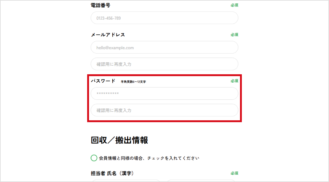 パスワード(半角英数8文字以上)を設定してください。パスワードはログイン時に必要となります。