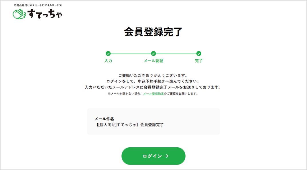 ※メールが届かない場合、メール受信設定のご確認をお願いします。